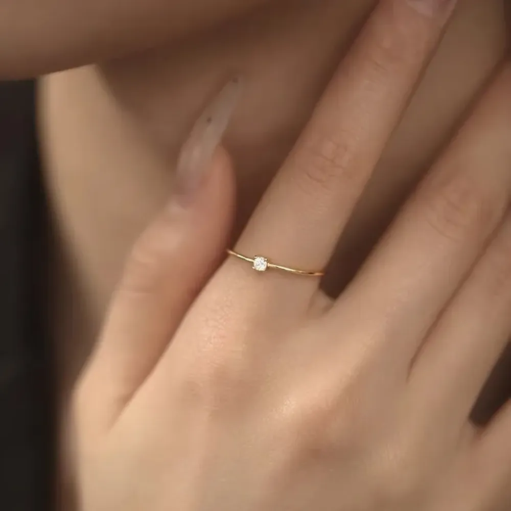 This S999 sterling silver thin band ring showcases minimalist elegance with a single sparkling cubic zirconia. Crafted from 99.9% pure silver. it’s hypoallergenic. smooth. and comfortable for all-day wear. The delicate silhouette exudes effortless sophistication. perfect for stacking or wearing solo to elevate any look.
